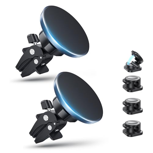 2 Pack Support Telephone Voiture Magnetique avec 4 Clips Câble - Rotation à 360° Aimant Telephone Voiture, Support Téléphone Voiture Magnétique Compatible avec Mag-Safe et i-Phone 17, 16, 15, 14,13,12