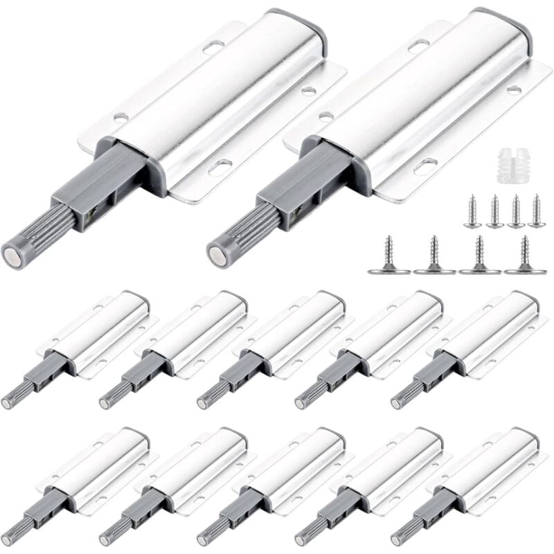 Push to Open Aimant Porte Placard 12 Pièces Aluminium Loquet Magnetique Porte Fermeture Push Open Amortisseur pour Armoire Fermeture Systeme Tiroir