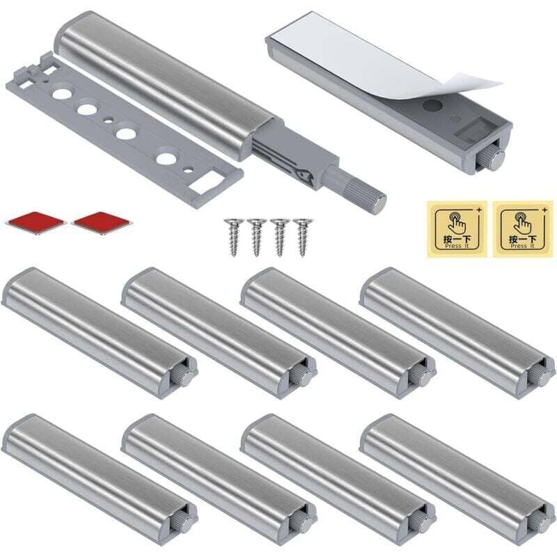 Poussoir Porte Placard 5 Pièces Push to Open Aimant Poussoir Tiroir Push Pull Porte Open Amortisseur pour Armoire Fermeture Systeme Tiroir-Aluminium