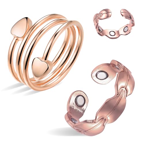 BioMag Lot de 2 anneaux de drainage lymphatique en cuivre pour femme dans différents designs, anneaux magnétiques en cuivre pur avec aimant ultra puissant 10x, bijoux réglables dans une boîte cadeau
