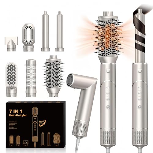 Pro Air Brush 7 en 1 Brosse Soufflante Air Styler Sèche-cheveux Ionique Haute Vitesse [110,000 tr/min] avec 7 Accessoires de Coiffure - Coffret Cadeau pour Femmes Ensemble de Brosses à Air Chaud, Doré