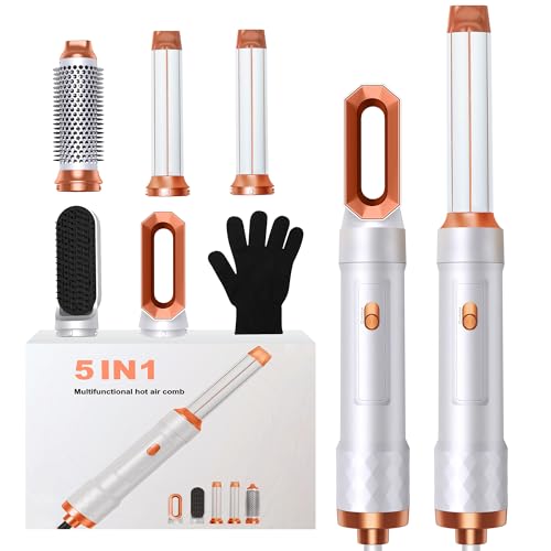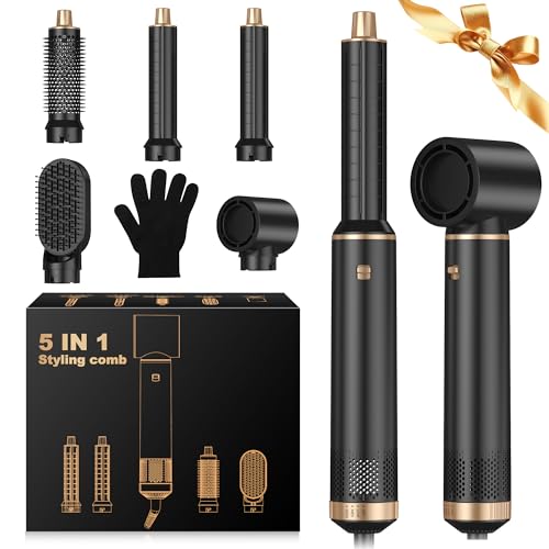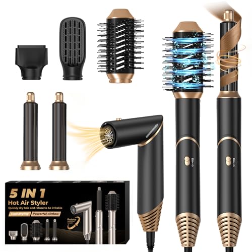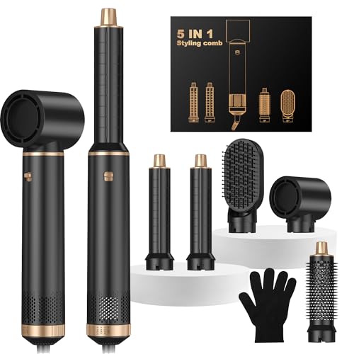 Air Brush 5 en 1, Hair Styler 5 en 1, Air Styler avec Sèche Cheveux Ionique, Brosse Soufflante, Fer à Boucler, Brosse Thermique, Brosse Lissante, Seche Cheveux 5 en 1 pour Sécher, Boucler, Lisser