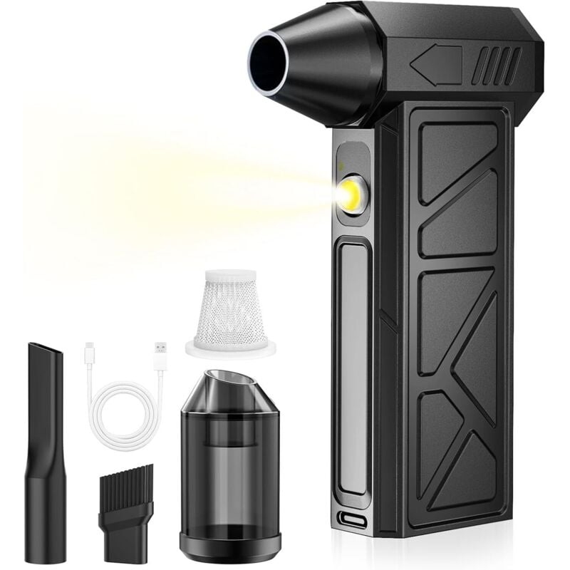 Air Duster Gonfleur Pompe À Vide 3 En 1 Avec Lumière 3 Vitesses Réglables 50000rpm Rechargeable Sans Fil Souffleur D'Air Moteur Brossé 6 Buses Pc