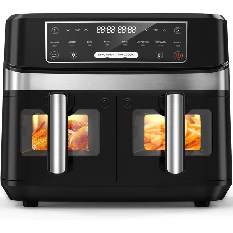 Air Fryer Avec Double Compartiment, Friteuse Sans Huile 9L Avec 8 Programmes 2600W, Friteuse À Air Chaud, Fonctions Match Coo