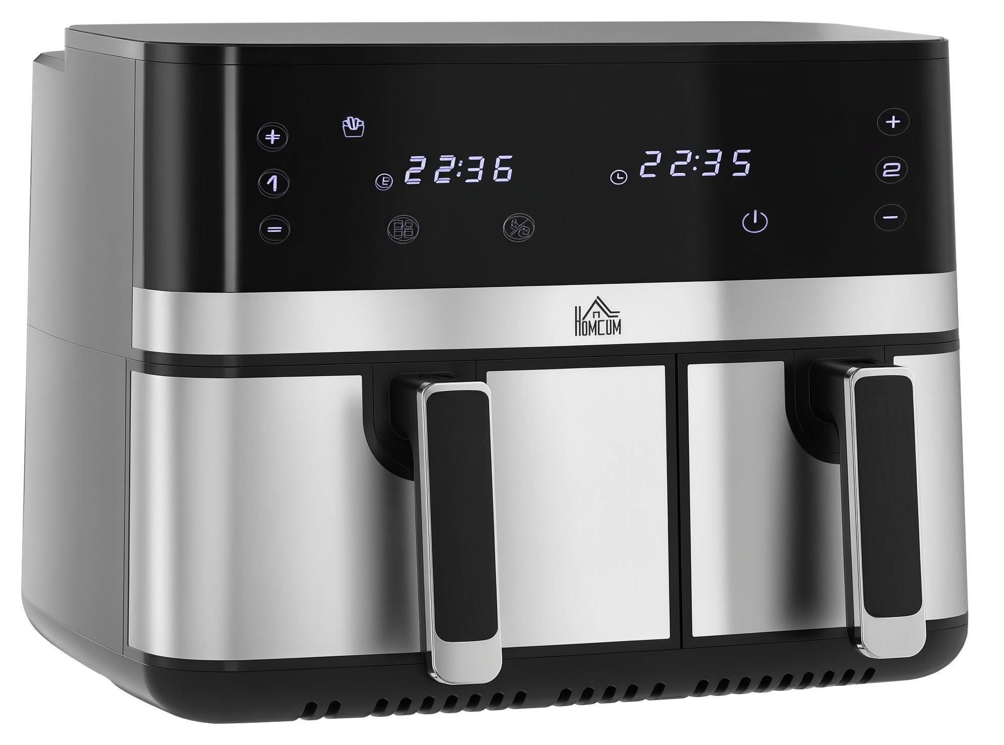 HOMCOM Friteuse à air sans huile air fryer double compartiment 8 L - 2500 W - 8 programmes, écran LED, température réglable, minuterie - noir
