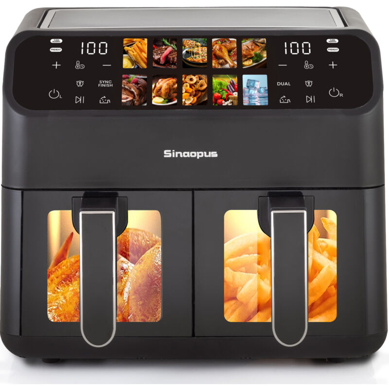 Air Fryer Double Compartiment 9L Friteuse Sans Huile a 2x4,5L Tiroir, 2600W Friteuse à Air Chaud 8 en 1 Écran Tactile Smart Finish Fonction, Airfryer
