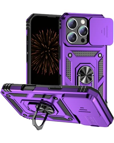 Nekiyo Tech Étui avec Support Magnétique Rotatif 360° Compatible with iPhone 15 Pro Max, Protection Grade Militaire avec Couverture Caméra Technologie Antichoc Air Cushion pour Homme Femme - Violet