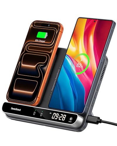 Double Chargeur Induction pour 2 Téléphone, Station de Charge pour iPhone Air/17 Pro Max/17 Pro/17/16/15/14, Samsung Galaxy S25/S24/S23/S22, Pixel 9/8 & Earbuds, SwanScout 504 (Black & Tech Grey)