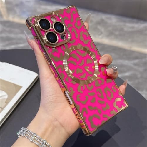 GSASMU Coque de téléphone de Luxe à Motif léopard avec placage magnétique pour iPhone 17 Air 13 14 15 16 Pro Max, Protection d'objectif et Pare-Chocs (pour iPhone 15/Rose)
