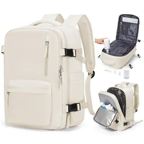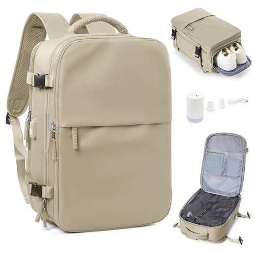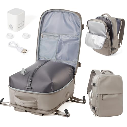 WEPOET Sac a Dos Compression sous Vide Homme Femme Sac Airbag Travel sous Vide Imperméable Sac à Dos Voyage Cabine Avion 40x30x20 Saca Sos Ordinateur Portable 14 Pouces Port USB-Beige
