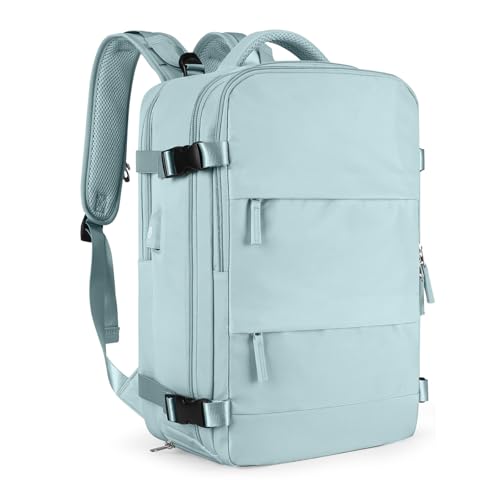 Sac a Dos Sous Vide Voyage Avec Pompe Sac Airbag Travel Sac a Dos Voyage Cabine Avion 40x30x20 Easyjet Imperméable Vacuum Backpack Homme Femme Port USB Avec Compartiment à Chaussures(Bleu ciel)