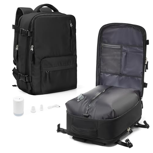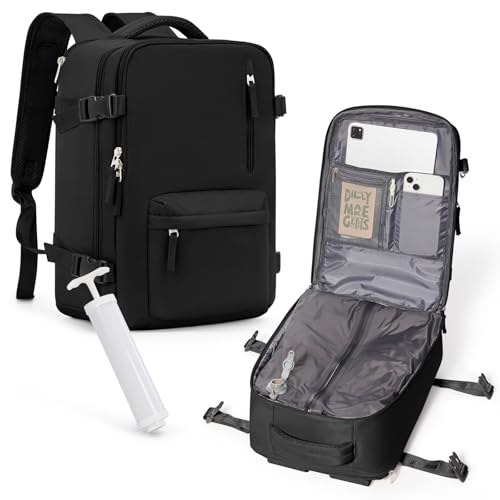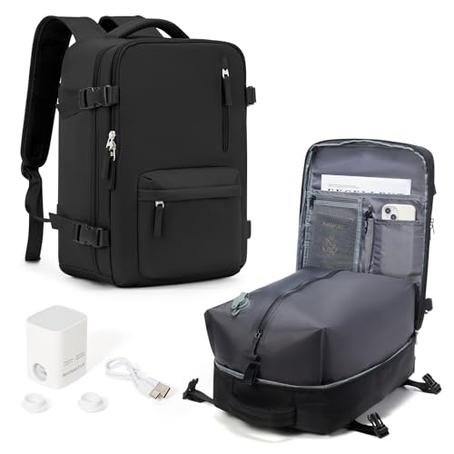 HPLQQ Sac à dos sous vide de voyage avec pompe pour Easyjet, Cabine Avion Bagage cabine à main avec compression pour homme et femme,Sac airbag avec pompe,G01-Noir