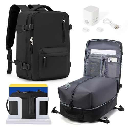HPLQQ Sac à dos sous vide de voyage avec pompe pour Easyjet, Cabine Avion Bagage cabine à main avec compression pour homme et femme,Sac airbag avec pompe,F01-Noir