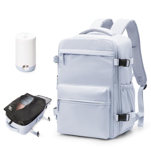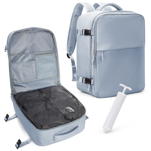 suradar Airbag Sac a Dos sous Vide Voyage Cabine Avion 40x20x25 avec Pompe, Bagage Sac Ryanair Cabine 40x20x25 Compression Cous Vide Sacs à Dos Ordinateur Portable 14 Pouces Femme Homme Bleu Gris