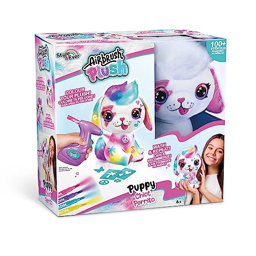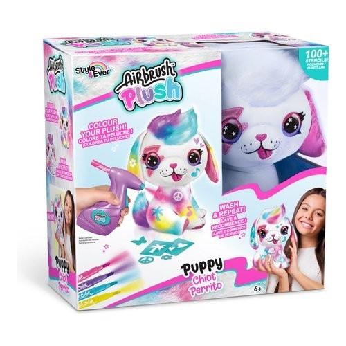 Canal Toys - Airbrush Plush - Peluche Hair'iffic à Coiffer et Décorer - Pulvérisateur Airbrush, 3 Feutres, 15 Pochoirs, Accessoires Cheveux - Kit Créatif Complet - Idée Cadeau Enfant - AIR 040