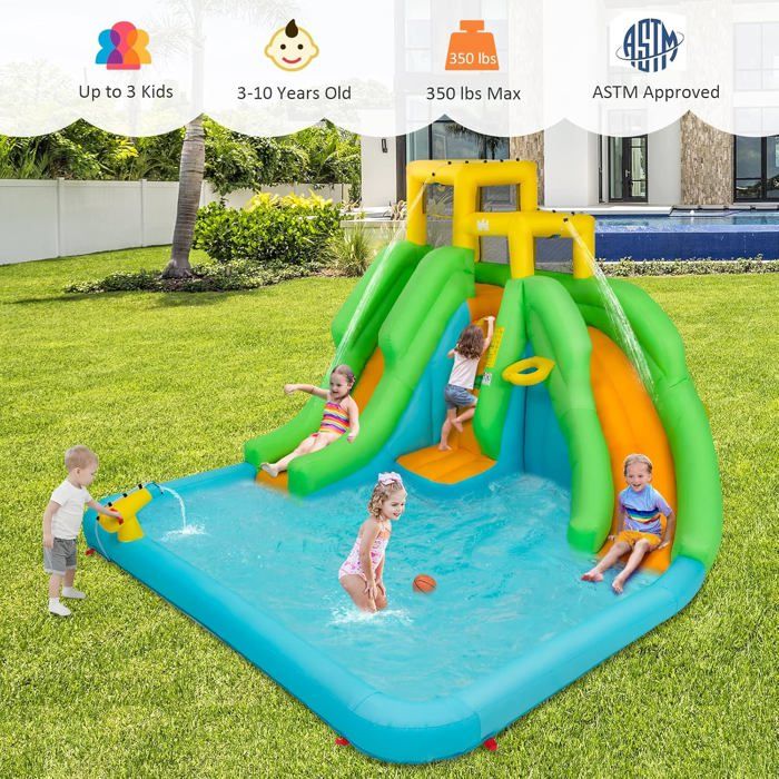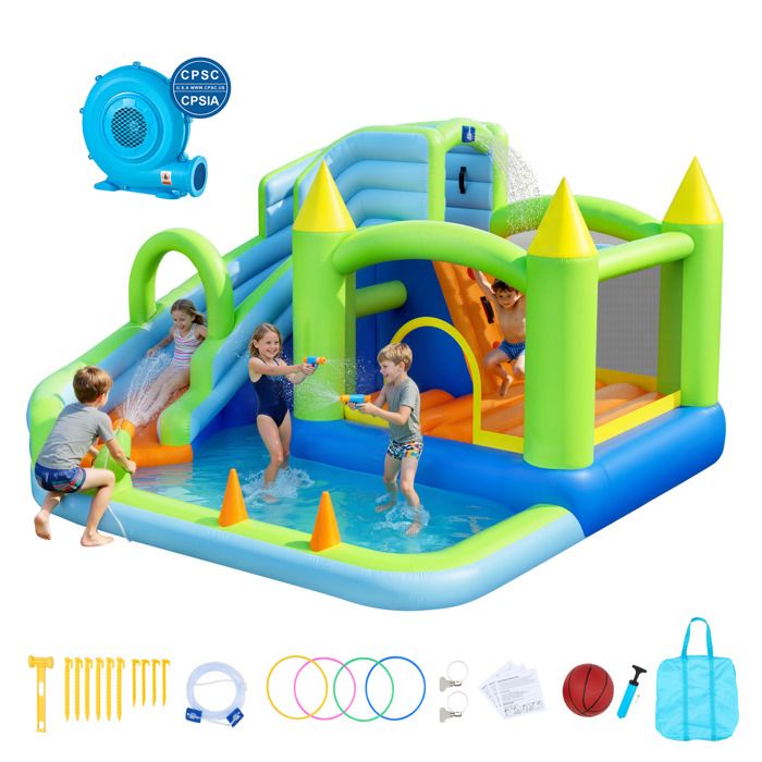 LALAHO Aire de Jeux Gonflable avec Souffleur Piscine Toboggan AquatiqueCanon à Eaua465 x 365 x 195cm