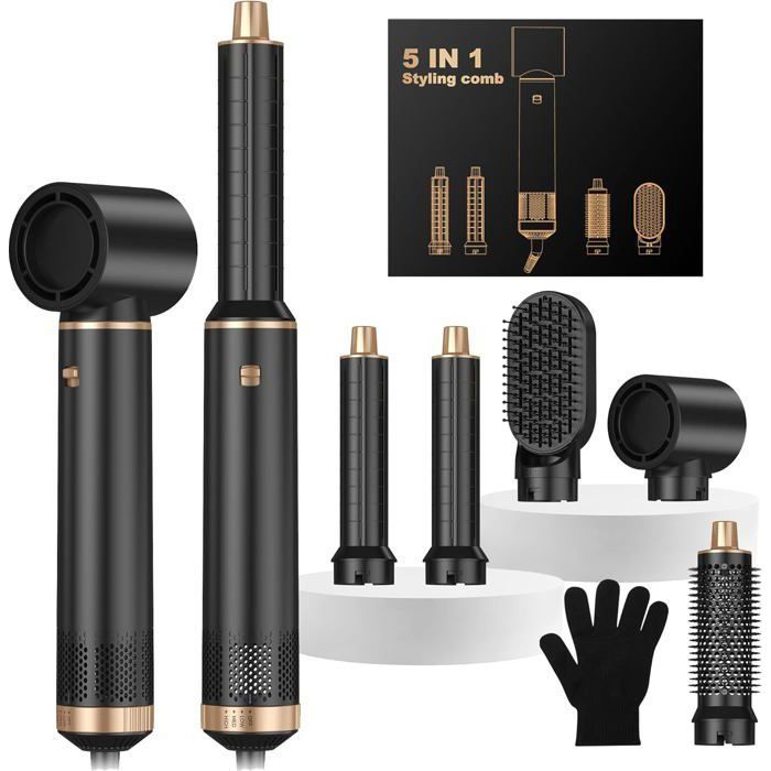 Brosse Soufflante 5 En 1 Air Styler Seche Cheveux Hair Styler Avec 5 Accessoires Sèche Cheveux Brosse Souflante Airflow Fer A Noir2