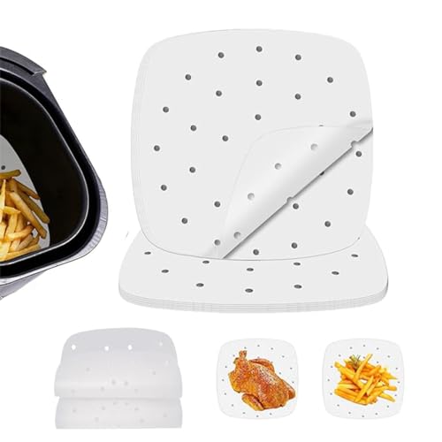 ZKSXOA 100 Feuilles Papier, Carré, Perforé Papier Cuisson Air Fryer, Jetable Revêtements pour Grill, Cuisson, Vapeur, Friteuse, 8Inch