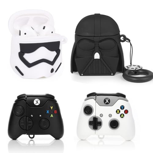 Lot de 4 coques de protection pour AirPods 2e et 1ère génération, en silicone XMBYGY avec joli design peau de dessin animé pour AirPods 1/2, avec mousqueton (BKsolder, WT+manette de jeu, dBK+Wht)