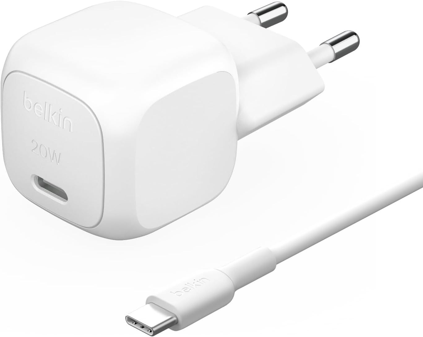 Belkin BoostCharge Chargeur Secteur Compact 30 W (USB-C Power Delivery, Recharge Rapide pour Apple iPhone 16, Samsung Galaxy S25, iPad, AirPods, etc., câble USB-C vers C Inclus, Blanc)