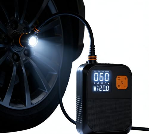 Jotekonoby Air portable sans fil pour pneus de vélo, voiture, moto et EV avec contrôle de la pression, écran LCD, charge de type C, design léger de 320 g