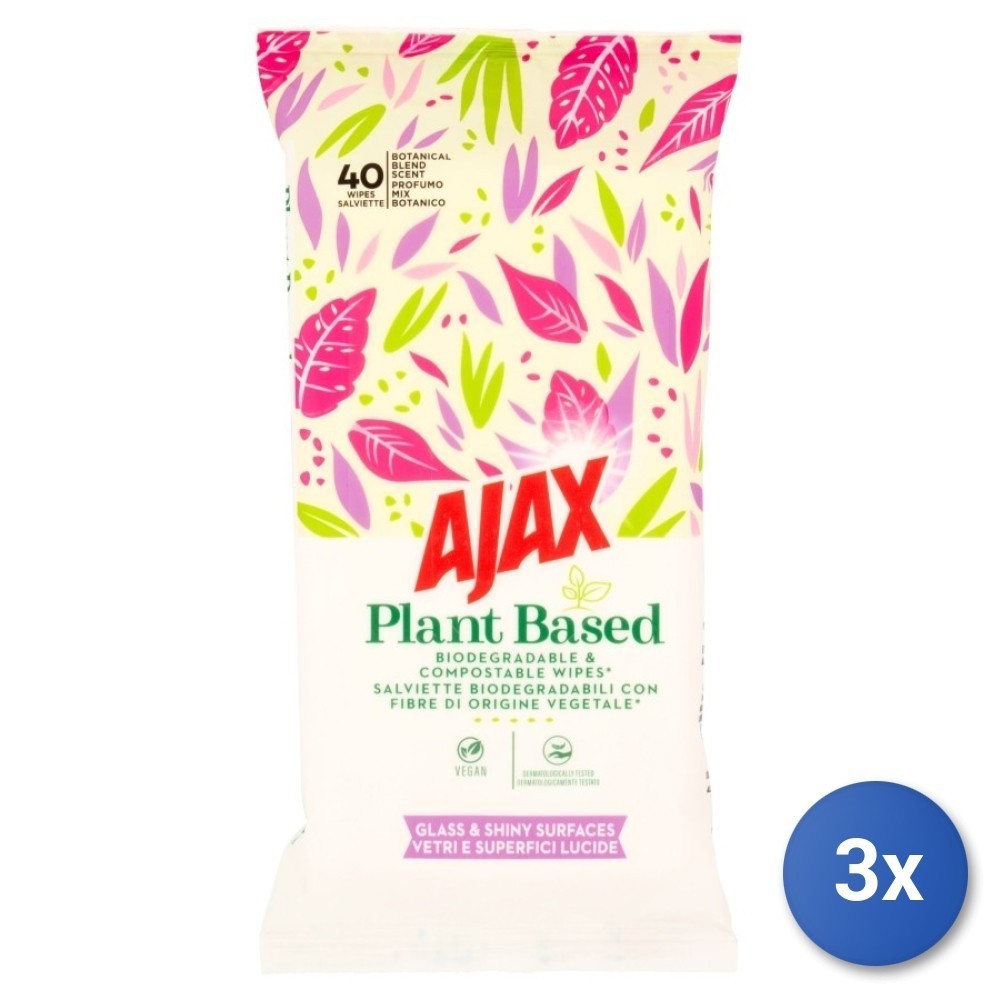 3X Lingettes Vitres AJAX 40 Biodégradables