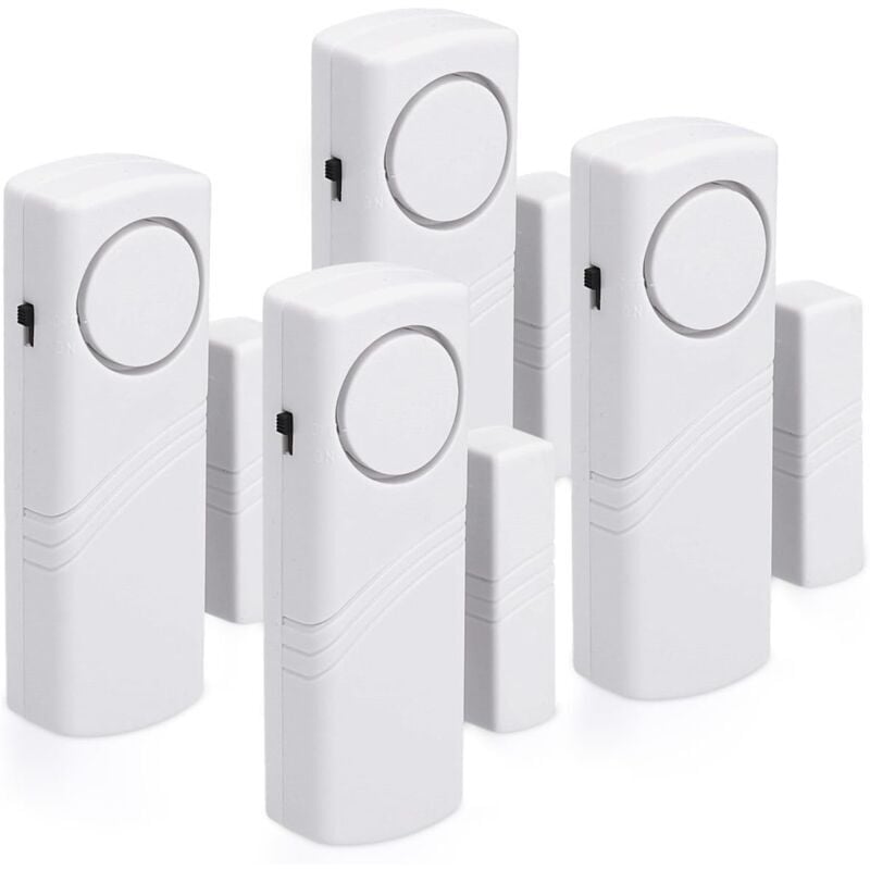Alarme de porte et de fenêtre - Lot de 4 alarmes anti-intrusion sans fil - Sécurité domestique contre les cambriolages - Fonctionnement magnétique - 100 dB, 30 g
