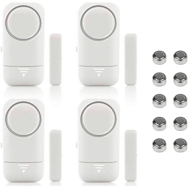 Lot de 4 alarmes magnétiques pour fenêtre et porte - Alarme maison- Système anti-vol sans fil - Piles incluses- Anti-Intrusion Anti-Vol Contre