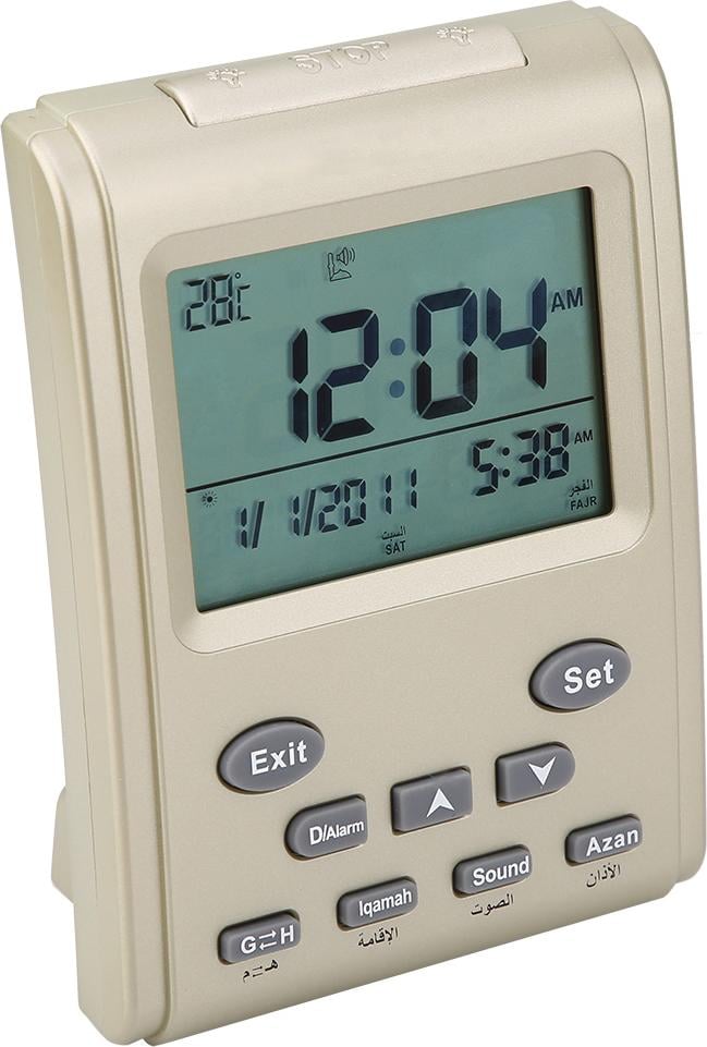 Écran LCD Adhan Table Clock Rétro-éclairé Bureau Clcok Islamique Athan Musulman Prière Alarme Bla Direction Affichage Température Horloge Numérique Islamique Azan Athan Musulman Prière Alarme
