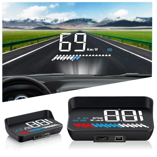 Affichage HUD embarqué OBD2 et affichage HUD GPS double système, compteur de vitesse compteur de température de l'eau vitesse du moteur alarme de sécurité pour tous les véhicules