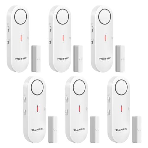 TechRise Alarmes de Porte et Fenêtre, 3 Réglages de Volume, Alarme de Sécurité Domestique sans Fil avec Sonnette de Porte, Installation Rapide pour Maison/Hôtel/Appartement/Garage (Lot de 6)