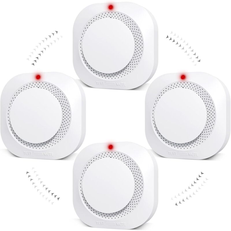 4Détecteur de Fumée Sans Fil Intelligent - Alarme Incendie Maison avec Signal Lumineux LED et Bouton Test, Piles Non Incluses