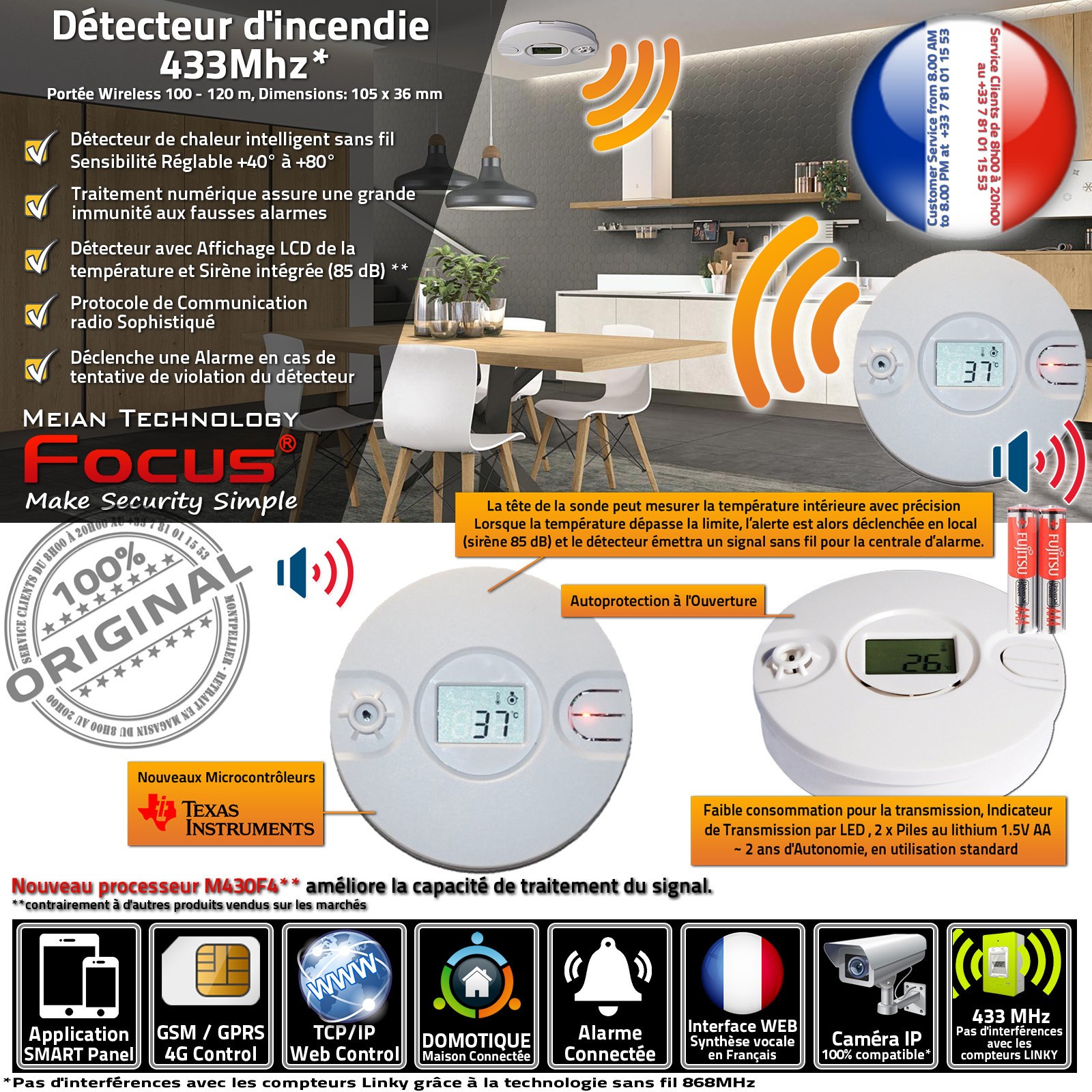 Centrale Alarme Connectée Maison Appartement Relais Détection Feu Incendie MD-