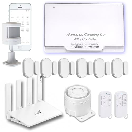 Alarme pour Camping Car - WiFi 4G + Box Routeur - Très Faible consommation électrique - Entiérement programmée - sans Fil - WiFi et 4G aux Normes Française et européenne
