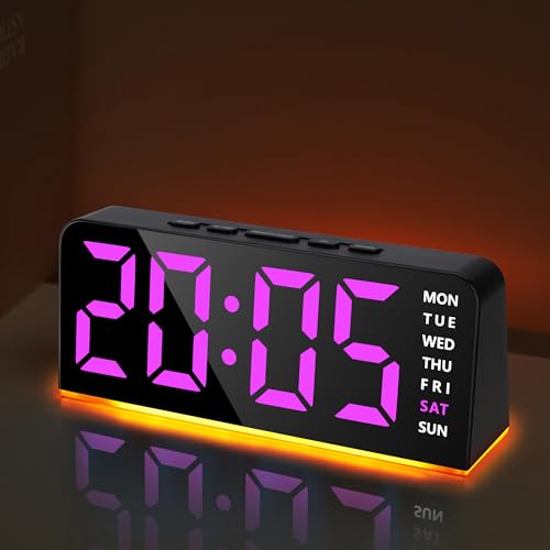 Lafocuse Réveil Numérique avec Veilleuse Inférieure, LED Réveil Matin avec Grands Chiffres, Snooze, Semaine, Luminosité Réglable, 12/24 Heures, Double Alarme pour Table de Chevet Chambre Bureau, Rose