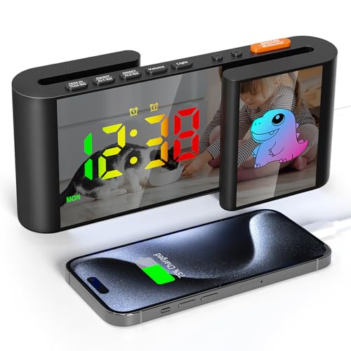 LetCart LED Réveil avec Projection, Réveil Numérique, Reveil Projecteur Plafond, Réveils Matin avec écran de température de Temps, Calendrier, Sons d’Alarme (Blanc)
