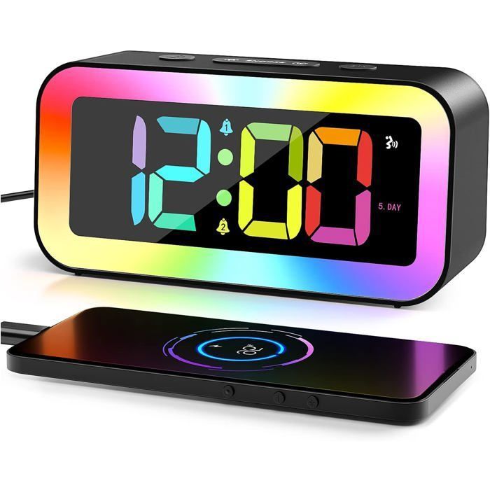 Réveil Numérique Reveil Enfant Lumineux avec Veilleuse 7 Couleurs LED Horloge Digitale Ado Reveil Matin avec 2 Modes dAlarme