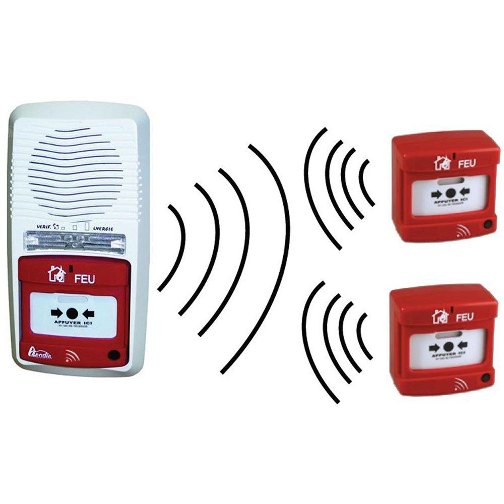 Pack alarme radio type 4 avec 1 déclencheur manuel radio avec répéteur