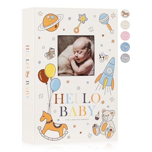 Lanpn Livre de Naissance Bébé, 154 Pages Album Scrapbooking Coller des Photos, Cadeau Naissance Bébé Fille Garçon, Livre Photo Souvenirs Bebe et Nouveaux-nés, Hello Baby Memory Book, Beige, Anglais