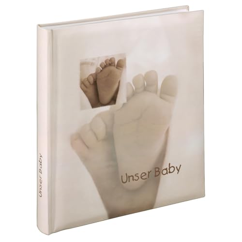 Hama Album Photo Naissance 29x32cm Baby Feel (200 photos 10x15cm à coller, 60 pages blanches vierges, intercalaire Papier Cristal, Album Scrapbooking DIY Livre photo à Personnaliser, Motif Bébé) Beige