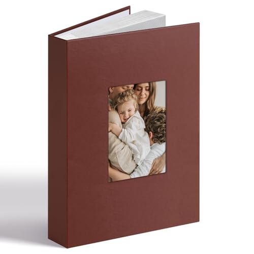 Vienrose Album Photo 6x4, Couverture Similicuir avec Fenêtre et Espace d'Ecriture 300 Pochettes, Cadeau pour Mariage, Anniversaire, Baptême, Livre de Souvenirs Photos de Famille, Brun