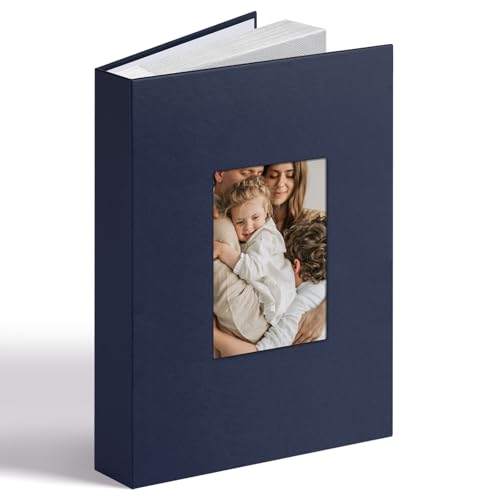 Vienrose Album Photo 6x4, Couverture Similicuir avec Fenêtre et Espace d'Ecriture 300 Pochettes, Cadeau pour Mariage, Anniversaire, Baptême, Livre de Souvenirs Photos de Famille, Bleu Marine