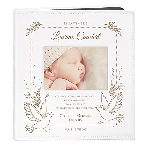 Maverton Album Photo 10x15 bébé à pochettes, Album Photo à personnaliser en cuir blanc, Cadeau Bapteme Fille et pour Garcon, Livre photo de baptême avec bebe imprimé - Cadeau Noel - baptême 3