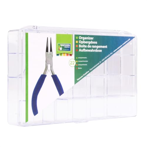 Vaessen Creative Boîte de Rangement - 22 Compartiments de Diverses Tailles - Plastique - 20 x 13 x 2,7 cm - pour Album Photo de Classe, Accessoires Diamond Painting et Scrapbooking