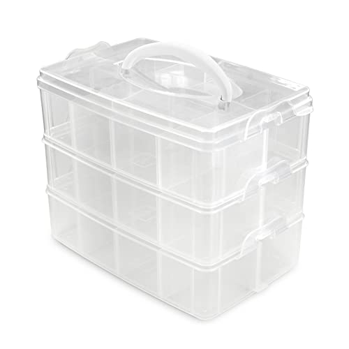 Vaessen Creative Boîte de Rangement - 24 Compartiments de Diverses Tailles - Plastique - 23,1 x 15,6 x 18,5 cm - pour Album Photo de Classe, Accessoires Diamond Painting et Scrapbooking