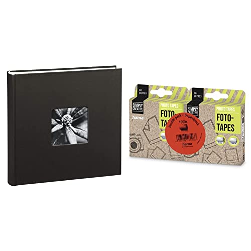 Hama Album Photo "Fine Art" (format 30 x 30 cm, 100 pages blanches, sans spirale) Noir & Distributeurs Pastilles photo (1000 pastilles, autocollantes double-face, distributeur pratique, sans acide)