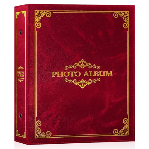 Album Photo Traditionnel 10x15 Pochette, Grand Format Album Photo de Classique avec Pochette Plastique 1000 Horizontal Vertical Photos Rouge