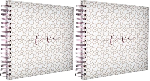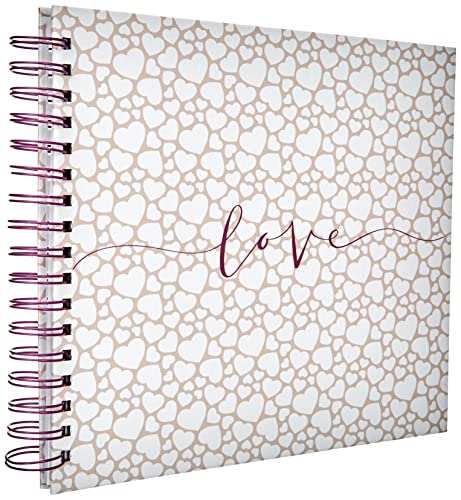 Hama Album photo à spirale "Romance" à personnaliser (Album Photo de Mariage ou naissance bébé, Livre d'or ou cadeau, 28 x 24 cm, 40 pages, Motif cœur, Titre Love, 80 photos 10 x 15 cm) Beige/blanc