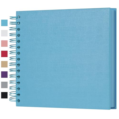 Album photo de 20,3 x 20,3 cm à couverture rigide en papier kraft vierge bleu pour mariage et anniversaire de mariage (bleu, 20,3 cm)