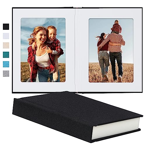 Album photo de 8,9 x 12,7 cm, pour 256 photos, couverture en lin de 7,9 x 12,7 cm avec fenêtre à l'avant, album photo de 7,6 x 12,7 cm pour photos de mariage, famille, anniversaire, cartes (noir)